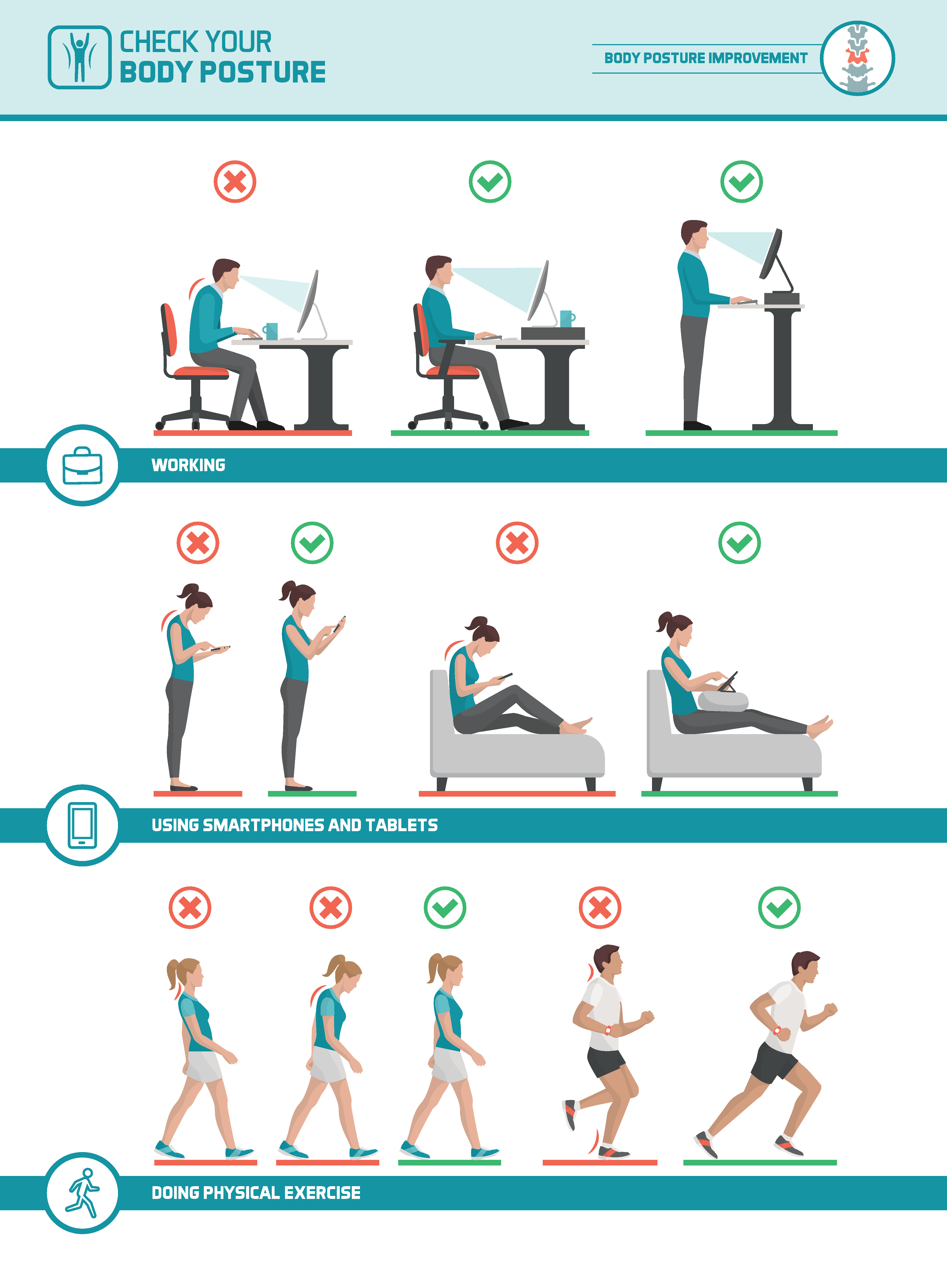 Check your Body Posture when using your smart phone or tablet, working at your desk or during physical activity. Correct ...